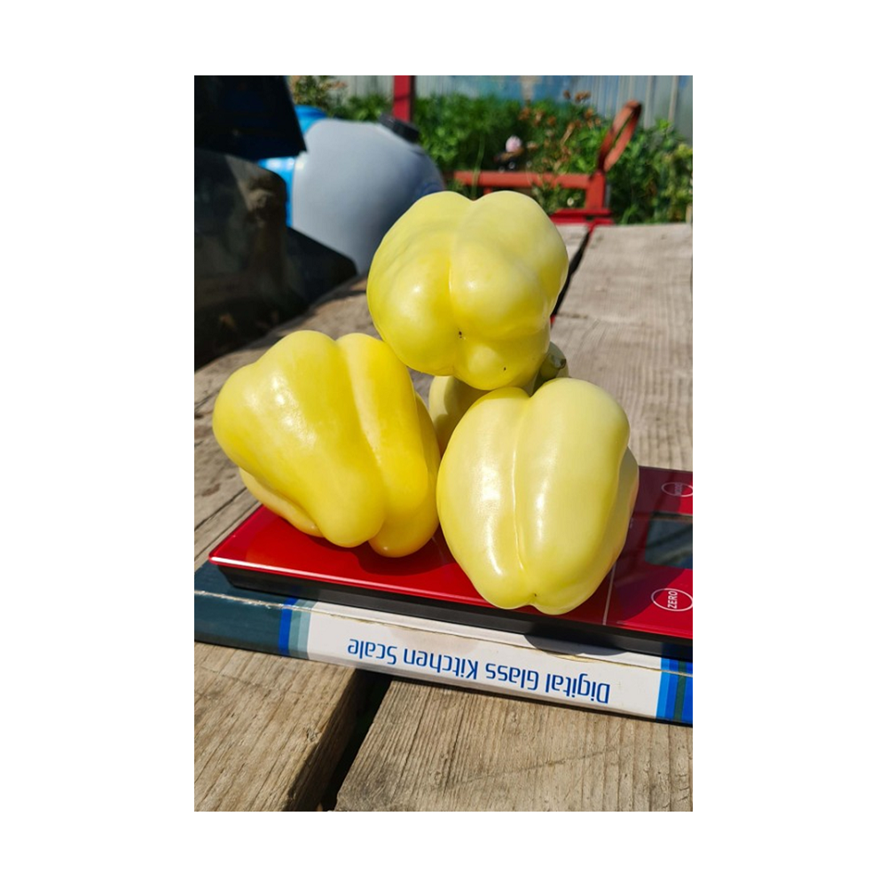 Sėkmingai auga tiek šiltnamiuose, tiek atvirame lauke. Vaisiai yra kubo formos, 9 cm ilgio ir 7,5 cm skersmens, labai gausiai dera. Sienos storos, spalva gelsvai balta, su dramblio kaulo atspalviais.