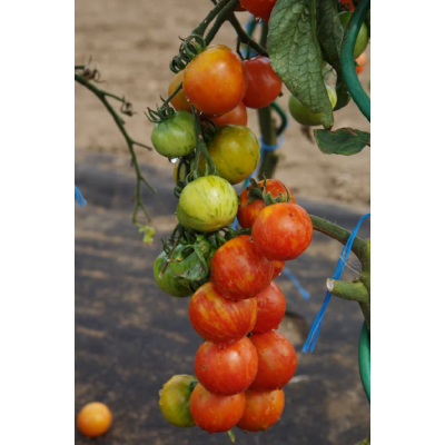 Vidutiniškai ankstyva, aukštaūgė pomidorų veislė, kilusi iš Čekijos. Ji ypač vertinama dėl savo dekoratyvios išvaizdos ir skonio. Vaisiai apvalūs, nedideli (apie 40–60 g), išsiskiriantys unikalia spalva – prinokę būna raudoni su geltonais ar auksiniais dryžiais. Ant vienos kekės gali užaugti net 20–25 pomidorai. Vaisiai sultingi, saldžiarūgščiai, plona odele, todėl puikiai tinka šviežiam vartojimui, salotoms ar patiekalų puošimui.